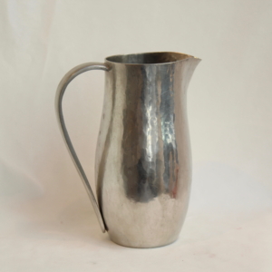Burettes droites anse pleine, réalisées à la main au marteau par notre dinandier, en étain alimentaire. Disponible sur commande.