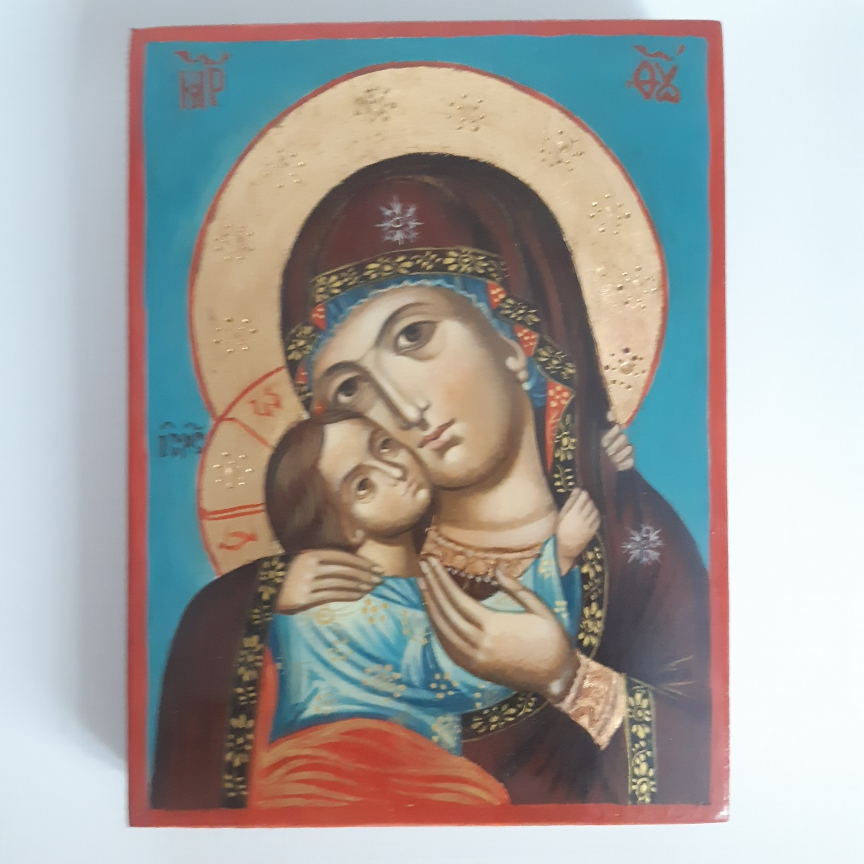 Icône de la Vierge Eleousa de Rila peinte à la main par Lilia B. Kasarska.