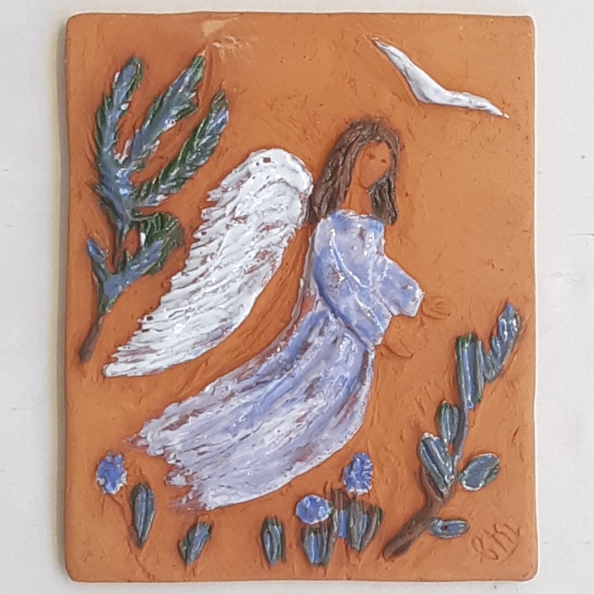 cette petite plaque représentant l’ange gardien est un beau cadeau pour un baptême ou une communion. Réalisée en terre cuite rouge émaillée, elle peut être accrochée au mur grâce à une réserve au dos de la plaque. Un crochet X adapté au poids, ou tête de clou suffisent.